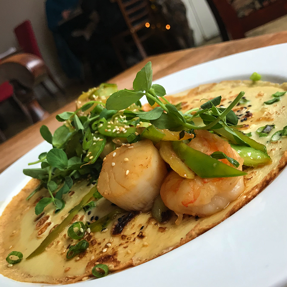 Crab and Cod Cheek in Thai Coconut Soup with Rice Noodles